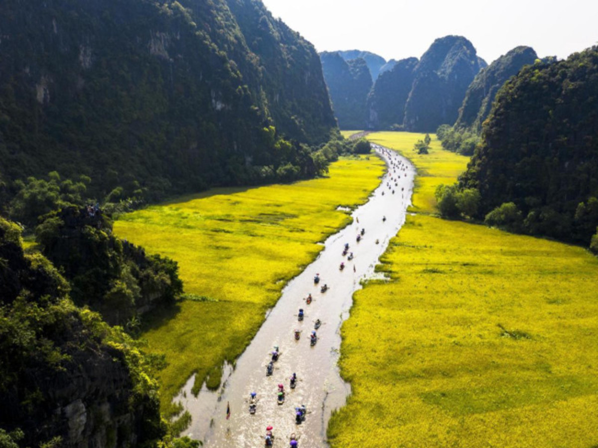 Après le petit-déjeuner à l’hôtel, vous prenez la route en direction de Ninh Binh, reconnu comme site du patrimoine mondial de l'UNESCO en 2014. C'est un paysage spectaculaire de pics de karts calcaires imprégnés de vallées, dont certaines sont submergées, et entourées de falaises spectaculaires. Vous visitez l'ancienne capitale de Hoa Lu pour avoir un aperçu des trois premiers États féodaux centralisés du Vietnam : la dynastie Dinh, la dynastie Le et la dynastie Ly. Déjeuner avec dégustation des boulettes de chèvre, spécialité de la région. Balade en barque à Tam Coc, reconnu sous le nom « baie d’Halong terrestre », au milieu de rizières, de grottes naturelles et de pitons calcaires. Vous faites la splendide promenade en vélo dans un village jusqu’à la pagode de Bich Dong. Dîner libre et nuit à l’hôtel • Remarque : Hanoi – Ninh Binh : 110km -2h de route