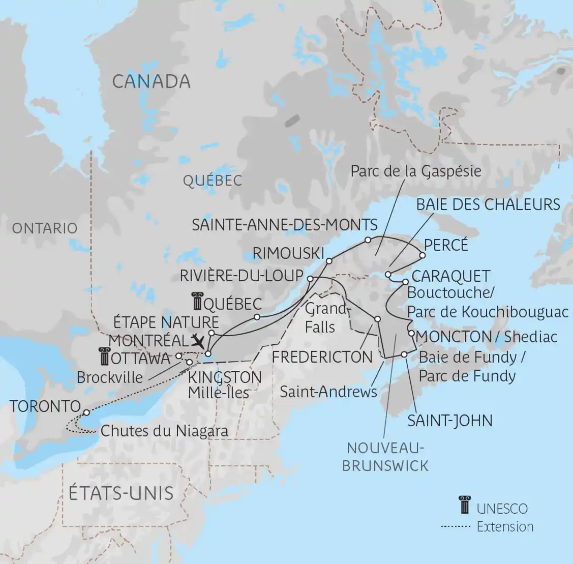 Vous découvrirez Québec, joyau du patrimoine mondial, lors d’une visite guidée. Temps libre. Déjeuner libre dans le Vieux-Québec. Départ vers le Bas-Saint-Laurent en passant par Saint-Jean-Port-Joli, village d’artisanat et de sculptures sur bois. Arrivée à Rimouski. Dîner. Nuit à l’hôtel.