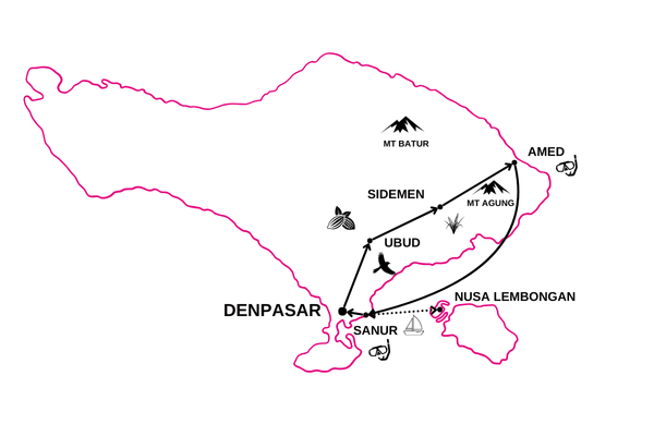 * La première et/ou la dernière nuit de séjour plage sur l'une des îles à proximité de Bali (Nusa Lembongan, Nusa Penida, Gili, Lombok, etc.) pourra s'effectuer à Bali au lieu de l'île prévue en raison d'horaires de vols ne permettant pas pas d'effectuer votre transfert par bateau vers l'île ou l'aéroport le jour même de votre vol.