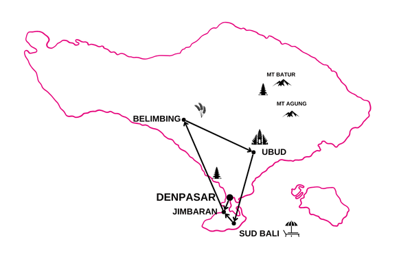 * La première et/ou la dernière nuit de séjour plage sur l'une des îles à proximité de Bali (Nusa Lembongan, Nusa Penida, Gili, Lombok, etc.) pourra s'effectuer à Bali au lieu de l'île prévue en raison d'horaires de vols ne permettant pas pas d'effectuer votre transfert par bateau vers l'île ou l'aéroport le jour même de votre vol.