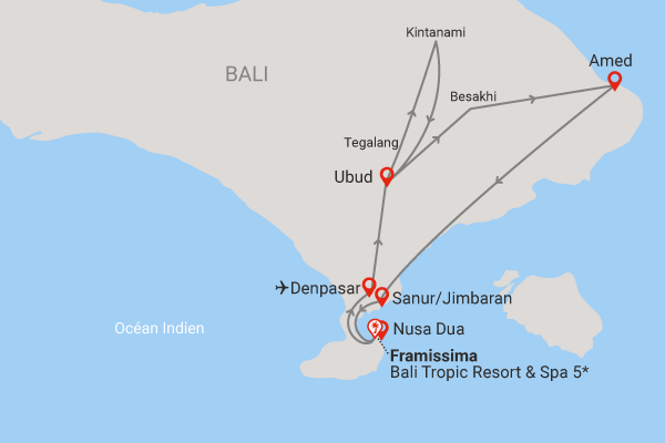 - Aucun vol Air France ne dessert Bali. Vol final à destination de Bali effectué par d'autres compagnies.