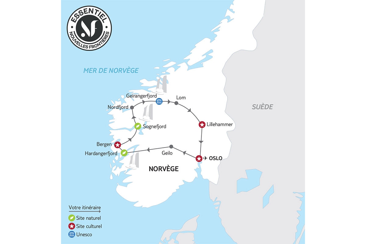 • Les services d’un guide accompagnateur francophone pendant tout le circuit, et de guides locaux francophones pour les visites d’Oslo et Bergen (jours 2 et 4).