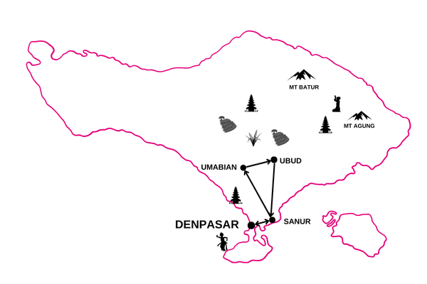 * L’accès à Jatiluwih et Tirta Gangga est limité à des bus d’une capacité maximale de 28 sièges donc groupe limité à 25 participants au maximum – il n’est possible de rejoindre le temple de Batukaru en bus donc ce dernier n’est pas inclus au programme