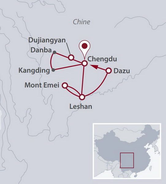 - Dans la province du Sichuan, possibilité de guide francophone avec supplément (nous consulter), mais le nombre de guides étant limité, il est conseillé de réserver tôt