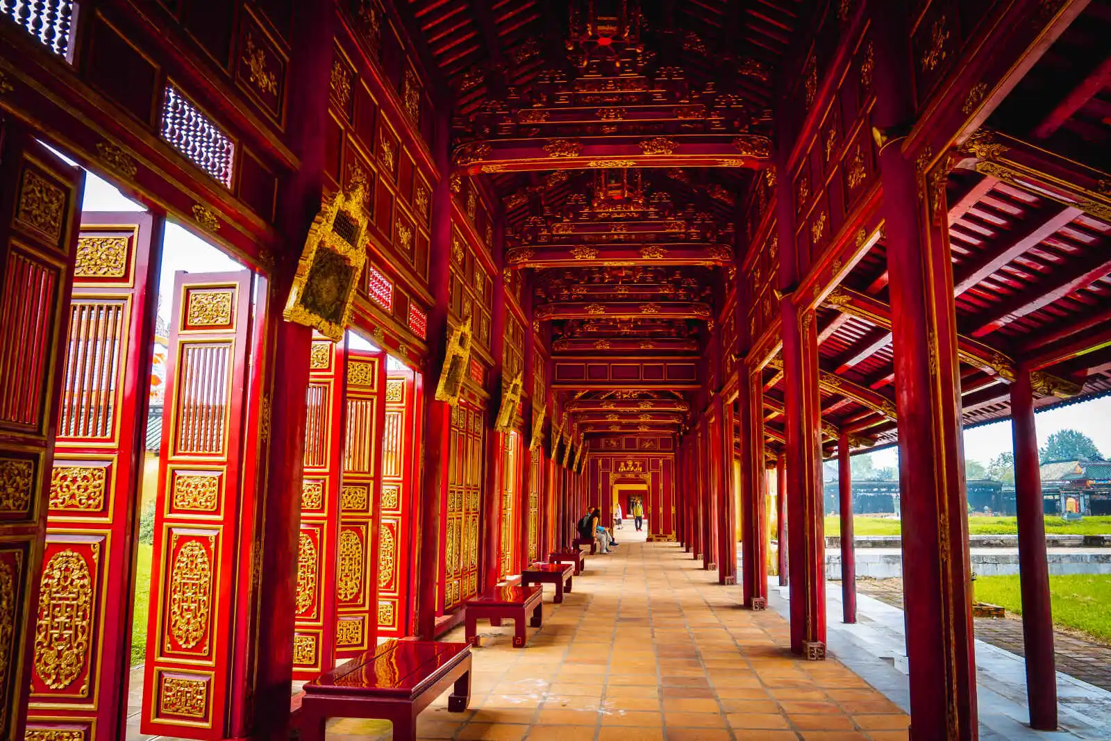 Balade à vélo pour rejoindre le village de Thuy Bieu. Visite de l’arène où s’affrontaient autrefois tigres et éléphants, et du cimetière des pachydermes. Découverte des traditions d’une famille vivant dans une ancienne maison-jardin. Participation à la préparation du déjeuner que vous partagerez avec vos hôtes. Retour à Hué en naviguant sur la rivière des Parfums. L’après-midi, découverte de la citadelle renfermant la Cité impériale et la Cité pourpre. Visite de la ville royale, du palais de l’Harmonie suprême et du tombeau de Tu Duc. Découverte des techniques de fabrication des chapeaux coniques traditionnels. Pour le dîner, nous vous convions à une balade en cyclo-pousse ; de nombreux arrêts sont prévus pour découvrir les spécialités culinaires de cette cité pleine de charme. Nuit à l’hôtel.