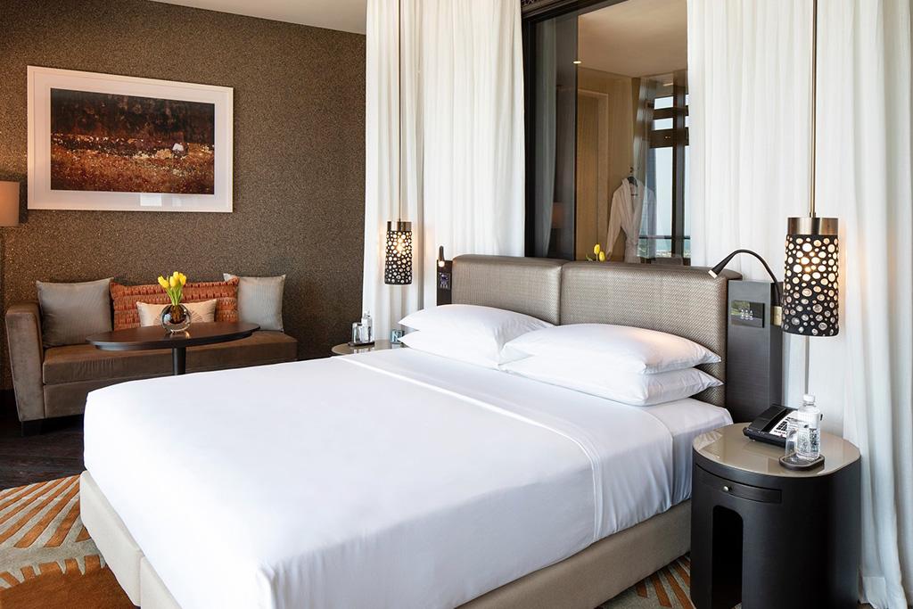 Le Grand Hyatt Abu Dhabi Hotel & Residences Emirates Pearl 5* dispose de 428 chambres offrants des panoramas à couper le souffle, décorées par de fabuleux mobiliers traditionnels.