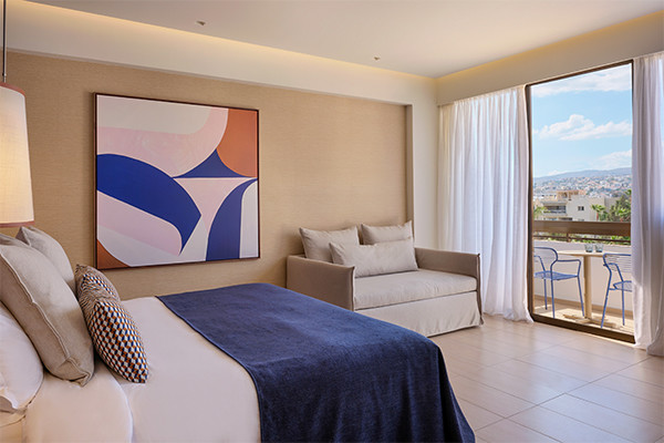 - Junior suite (36 m²) : lit king-size et canapé-lit, mêmes équipements. Capacité maximum : 3 adultes