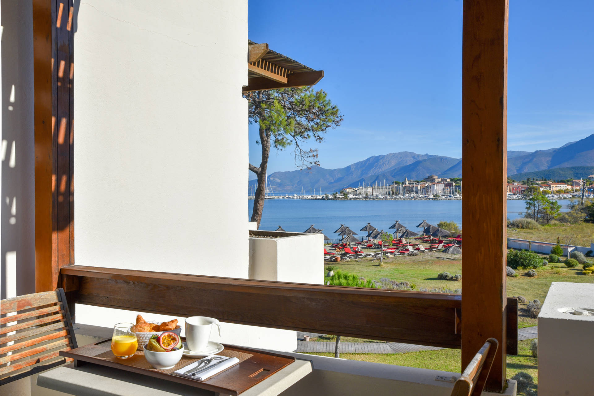 Un généreux buffet sucré-salé vous attend, mêlant viennoiseries croustillantes, pains variés, confitures artisanales et fruits frais. Côté salé, dégustez oeufs brouillés, fromages et charcuteries corses, accompagnés d'un bar à salade. Le tout accompagné de jus, boissons chaudes et douceurs maison pour commencer la journée avec plaisir et raffinement.