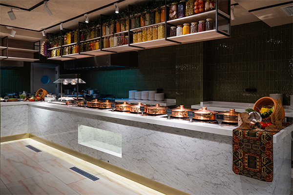 Le restaurant principal Pelagos de l'hôtel vous propose une cuisine locale et internationale servie sous forme de buffet, et vous accueille pour :