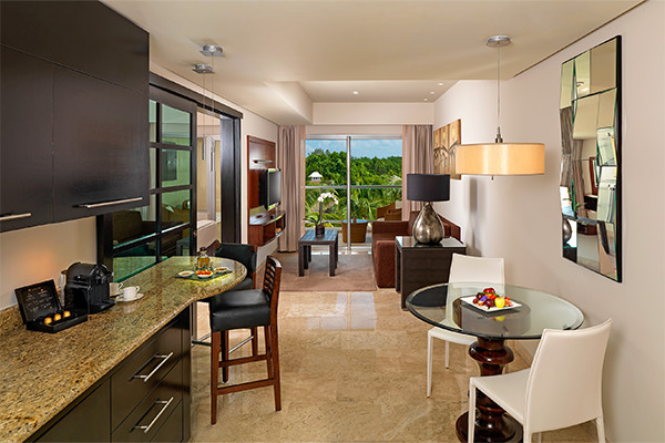- Family Concierge Master Suite avec vue nature (106 m²) : lit King size, salon séparé avec TV, canapé et canapé-lit, coin repas séparé, balcon ou terrasse avec bain à remous, mini-bar supérieur, avantages Family Concierge*. Capacité maximum : 3 adultes + 1 enfant.