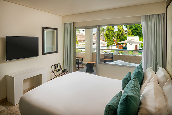 - Family Concierge Master Suite avec accès piscine (106 m²) : + terrasse avec accès direct à la piscine. Capacité maximum : 3 adultes + 1 enfant.