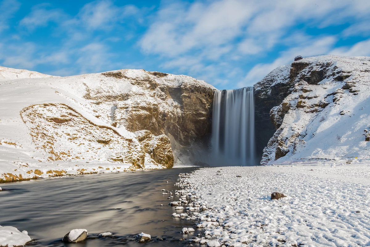 Journée dédiée à la découverte de la côte Sud, l’une des plus spectaculaires d’Islande. Admirez Seljalandsfoss, cascade que l'on peut longer par un sentier permettant d'observer l'eau depuis l'arrière, puis Skógafoss, impressionnante chute de 60 m. En chemin, vues sur le glacier Myrdalsjökull, qui recouvre le volcan Katla. À Dyrhólaey, promontoir rocheux dominant l'océan, profitez d'un panorama sur les falaises et immenses plages sombres. Terminez par la plage de sable noir de Reynisfjara et ses colonnes basaltiques avant d'atteindre le charmant village de Vík. Nuit dans la région de Selfoss.