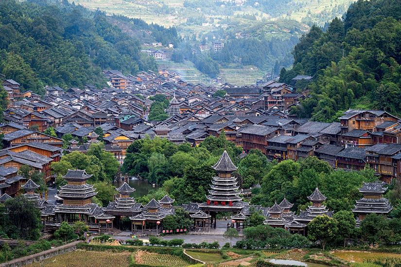 Visite du musée des minorités ethniques de Kaili. Promenade au marché. Ici règne le peuple des Miao. Visite duvillage de Jidao, situé au bord de la rivière Bala. Vous serez accueillis par les villageois vêtus de leurs costumes traditionnels (coiffes et bijoux en argent, peignes en bois, robes brodées...) qui vous offriront à boire un alcool local de riz en guise de bienvenue. Déjeuner et cérémonie de chants et de danses au cours de laquelle les hommes jouent du lushen, une sorte de flûte en bambou. Puis arrêt à Wudong à 1300 m d'altitude dans une vallée de la montagne Leigong. Le village conserve des bâtiments traditionnels en bois ainsi qu'un moulin à vent, vieux de 200 ans. Continuation vers Rongjiang. Dîner local. Nuit.