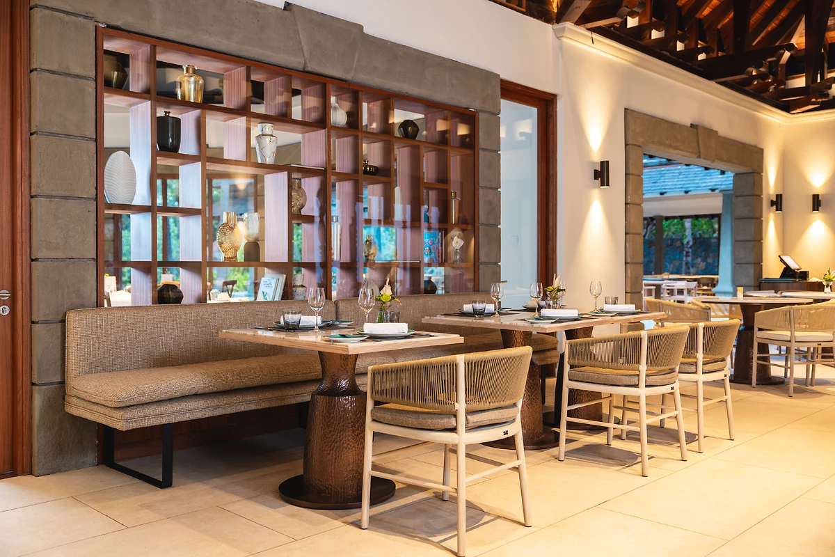 Le Cassine vous accueille dans un cadre chaleureux et élégant, sous un superbe plafond cathédrale en bois. L’atmosphère y est moderne et détendue, idéale pour savourer une cuisine soignée tout au long de la journée. Imaginé par des chefs expérimentés, le menu met en valeur des produits frais : poissons du jour, viandes tendres, herbes et légumes du potager de l’hôtel. Ici, la saison donne le la, pour une cuisine équilibrée, simple et savoureuse. Entouré de verdure, avec une vue imprenable sur l’océan Indien, le Cassine est un rendez-vous quotidien particulièrement plaisant. Pour plus d’intimité, une salle privative est également disponible.