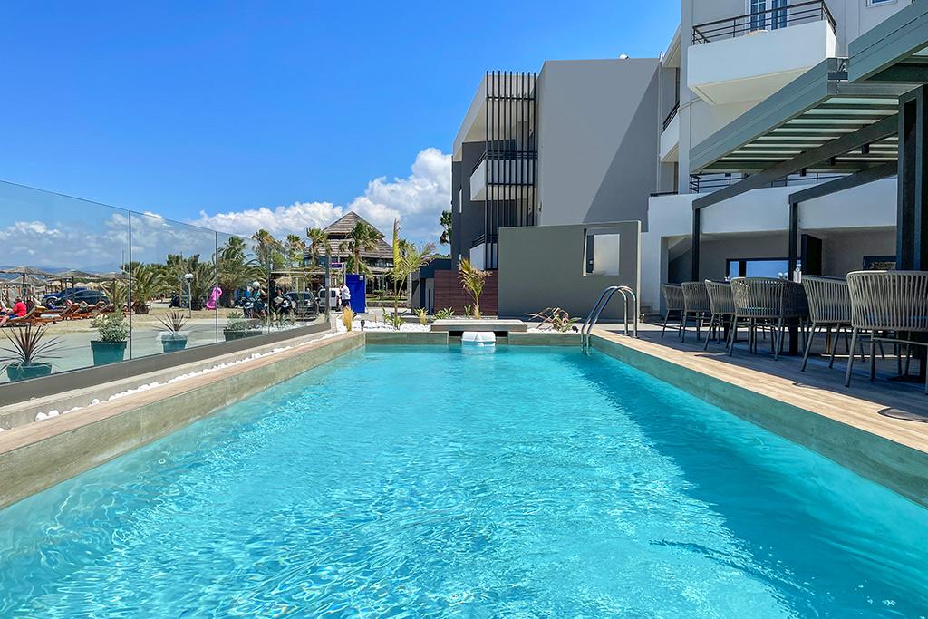 Bienvenue au Mare Blue & Suites 4* ! Idéalement situé à Georgioupolis, entre La Canée et Réthymnon, cet hôtel vous invite à une escapade raffinée en Crète. Séjournez dans l’une de ses 49 chambres et suites modernes, offrant une vue magnifique sur la mer ou les jardins. Profitez de sa piscine extérieure scintillante et détendez-vous au bar de la piscine avec votre cocktail et votre snack préféré. Le restaurant principal propose des buffets savoureux, tout au long de la journée, alliant saveurs locales et internationales. Avec un accès direct à la plage et un cadre élégant, Mare Blue & Suites 4* est l’endroit idéal pour un séjour alliant confort, détente et découvertes culturelles en Crète.