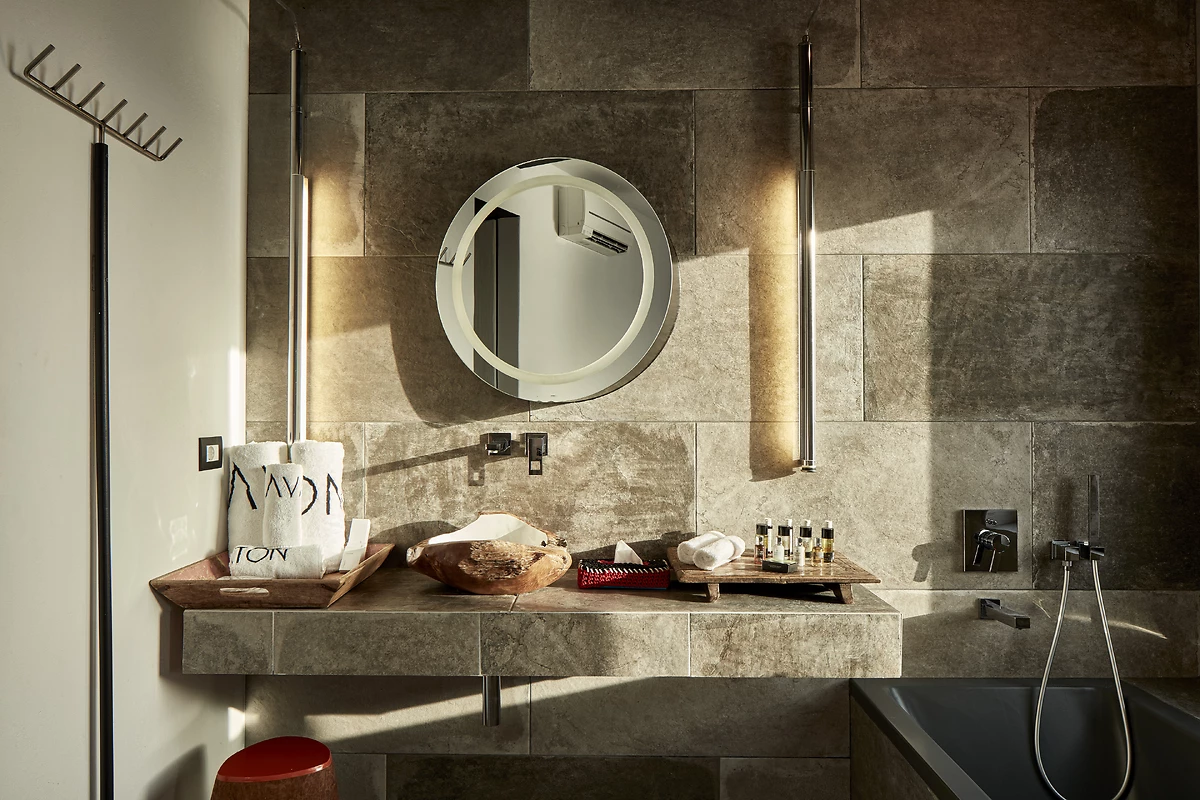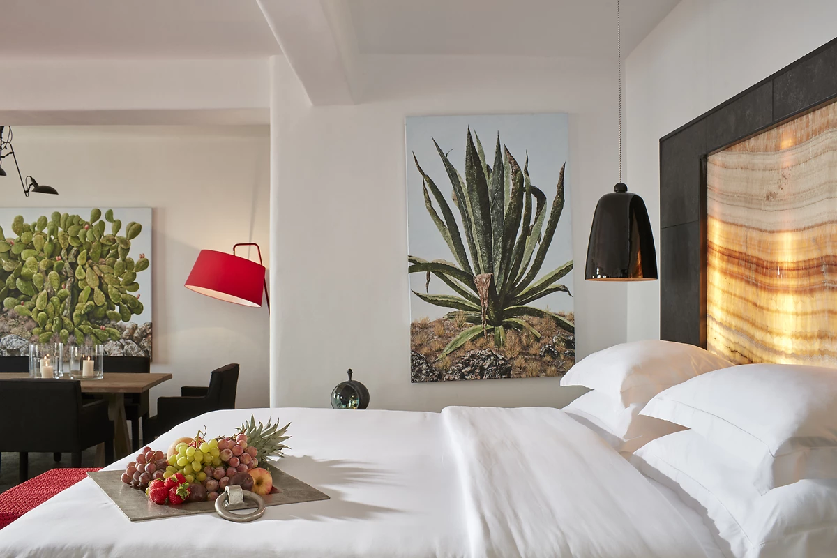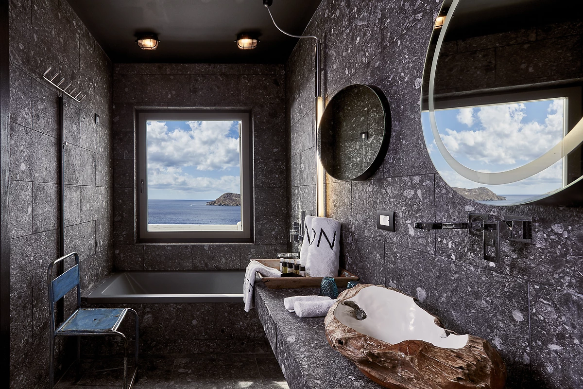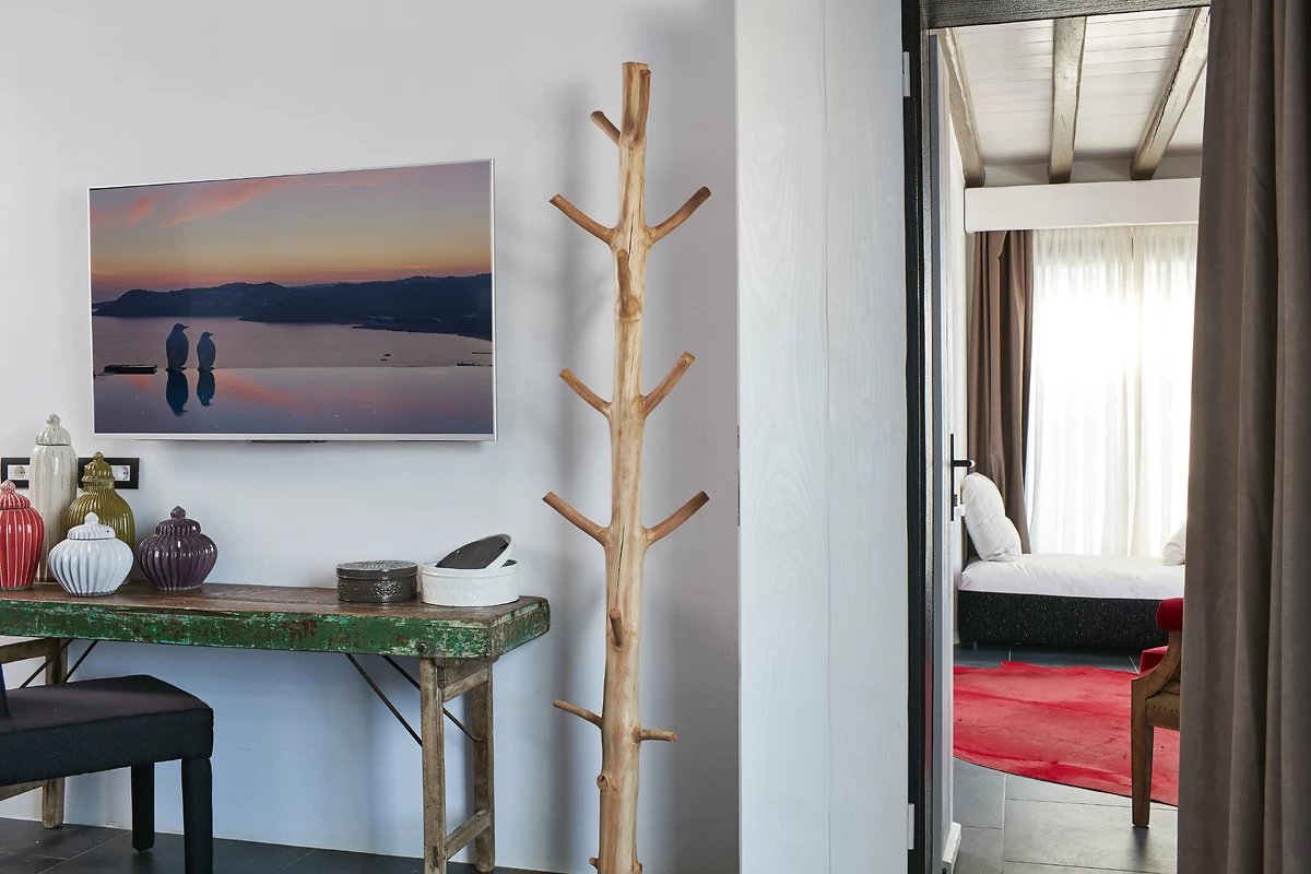 Restaurant Panorama proposant une cuisine aux saveurs locales et donnant sur la mer. Vous aurez l'opportunité de déguster les créations sophistiquées du chef grec Christos Nikolakopoulos. Le Kokkino Bar se trouve près de la piscine et s'avère être le plus bel endroit pour contempler Mykonos de nuit.