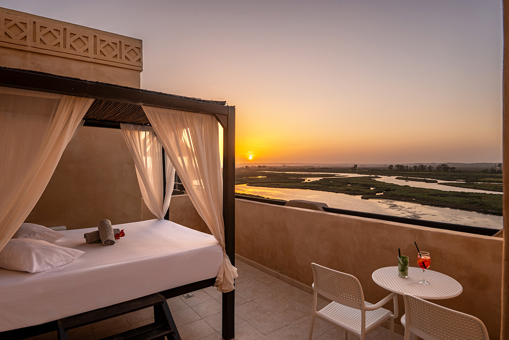 L’Ôclub Experience Vila Gale Isla Canela 4* compte 300 chambres spacieuses et lumineuses, dans des tons apaisants et à l’allure andalouse.