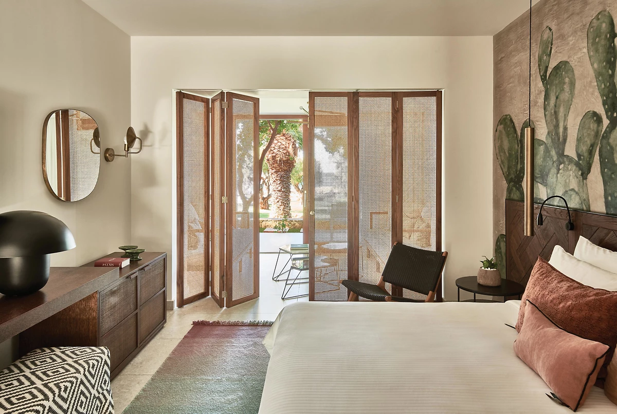 Le Cretan Malia Park propose de superbes chambres, bungalows et suites aux superbes vues et décorés dans un style bohème-chic. Les prestations sont superbes et l’intimité de chaque logement est parfaitement préservée.