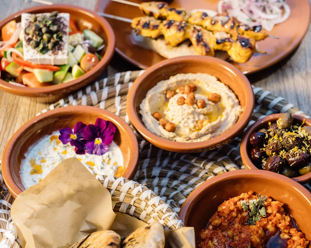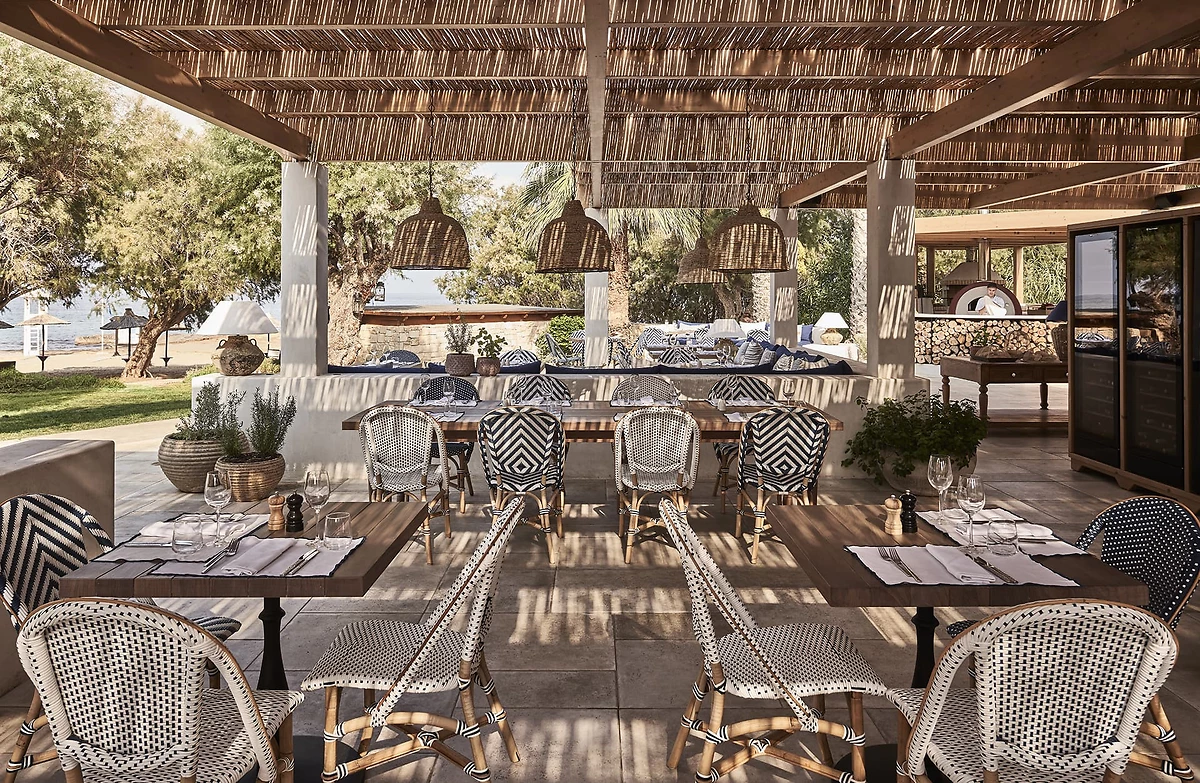 Restaurant Mediterraneo avec buffet de cuisines grecque et internationale. Avec supplément et sur réservation : Almyra, italien ouvert au déjeuner et dîner, le Mezze pour le déjeuner ouvert à tous et pour le dîner seulement du 1/6 au 30/9 et réservé aux adultes, le Mouries et sa cuisine crétoise pour le dîner et The Beach Shack, pour des repas légers au déjeuner ou à la carte lors du dîner. The Crush sert glaces, café et pâtisseries, Kafenio et ses spécialistés grecques, café, tsikoudia, mezzes crétois et le bar Melissi.