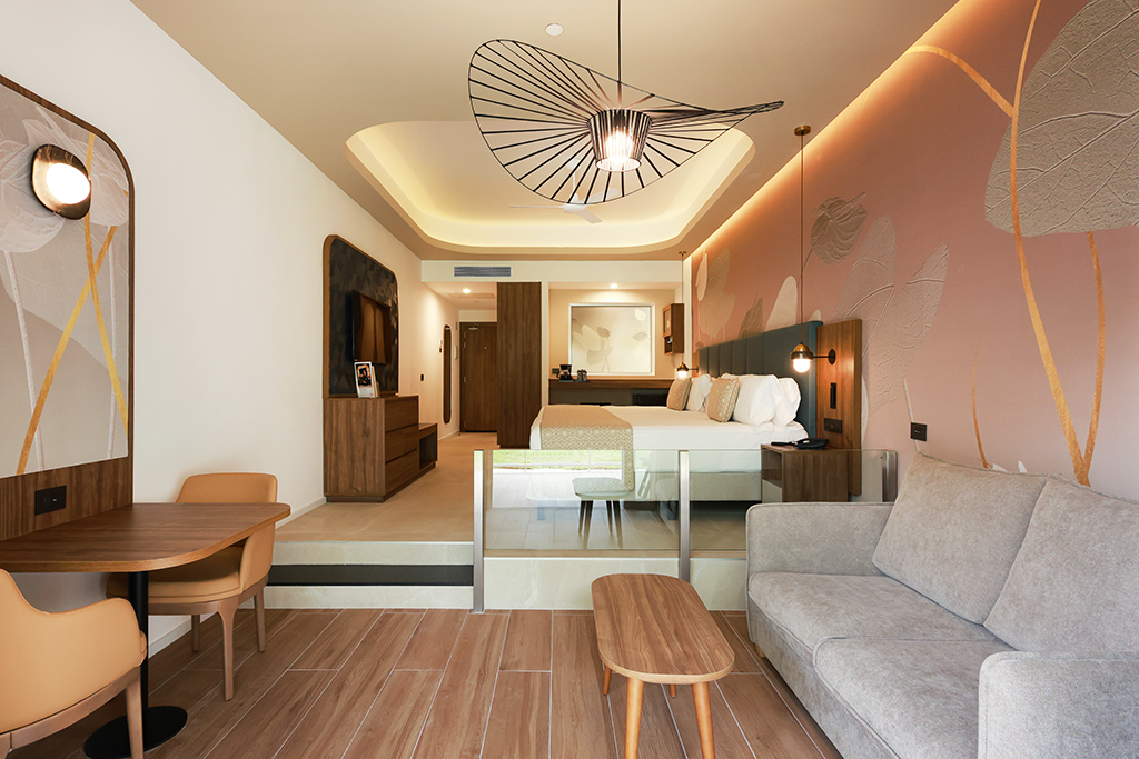 Le Riu Palace Mexico 5* Adult Only +18 dispose de 434 suites spacieuses et élégantes, réparties dans un bâtiment principal de trois étages au style contemporain, niché au cœur de vastes espaces de piscines et de jardins luxuriants.