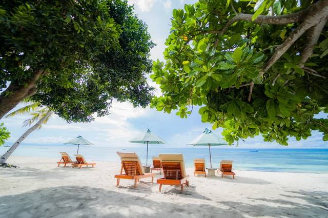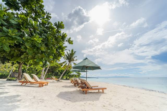 Belle piscine lovée dans les jardins, et accès direct à une petite plage de sable blond au calme. Avec participation : massages, snorkeling, kayak, sorties en mer, plongée (centres partenaires), ateliers culturels et excursions à Bohol (Chocolate Hills, rivière Loboc, tarsiers…).
