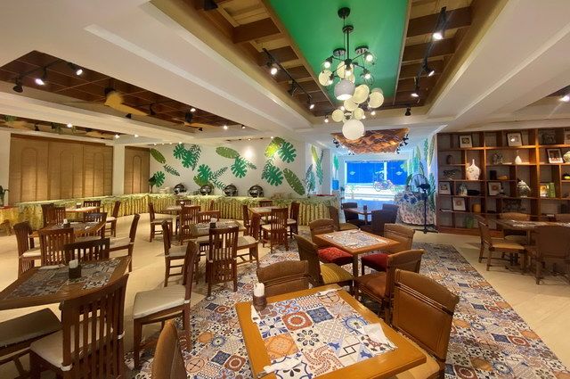 Restaurant-bar avec terrasse ouverte sur les jardins.