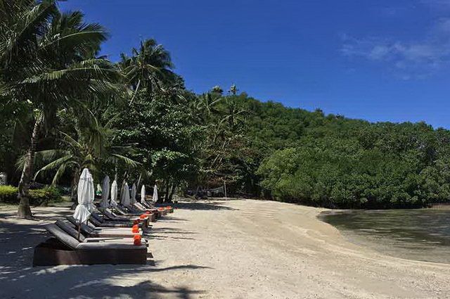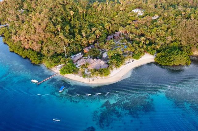 Situé sur l’île de Boquete (également appelée Paniquian Island), dans la baie de Muelle, un lagon protégé classé réserve de biosphère par l’UNESCO. L’accès se fait par bateau depuis le port de Batangas (ou via des navettes privées). Le cadre est très calme et naturel : entouré d’eau turquoise, de collines verdoyantes et d’une plage de sable fin aux teintes blanches et rosées. L’endroit est idéal pour ceux qui recherchent le calme, la détente et la proximité avec la nature, tout en restant accessible aux excursions vers Puerto Galera ou les récifs voisins.