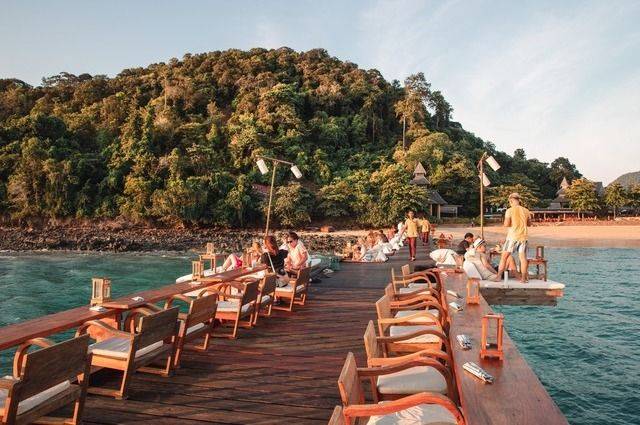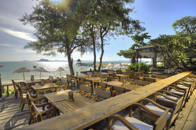 Restaurant Chantara (spécialités thaïlandaises), The Titan grill (grillades et plats traditionnels thaïlandais), restaurant Saaitara (cuisine internationale), restaurant et bar By The Sea les pieds dans le sable et le bar Jetinn Teppan pour admirer le coucher de soleil depuis l'embarcadère.