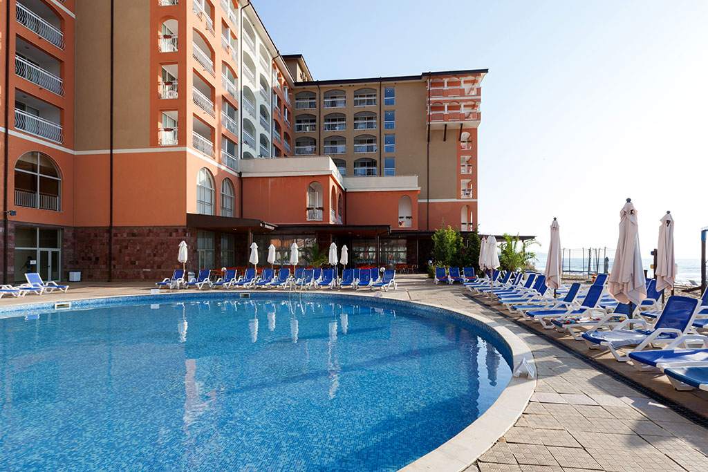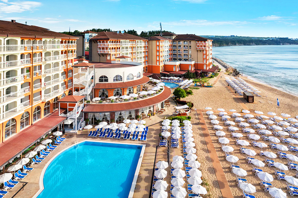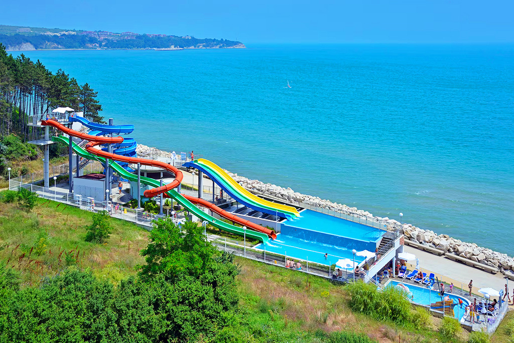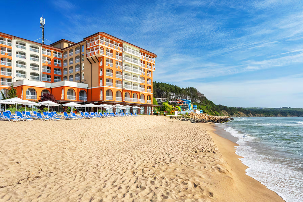 Bienvenue au Sol Luna Bay 4* ! Situé sur la côte bulgare de la mer Noire, ce complexe tout compris est un véritable havre de détente pour toute la famille. Ses chambres élégantes et lumineuses, avec balcon offrant vue sur la mer ou sur le parc, allient confort moderne et atmosphère apaisante. Profitez des piscines, toboggans et parc aquatique, détendez-vous au spa avec sauna et massages, ou participez aux activités et animations pour petits et grands. Les amateurs de sport pourront également s’exercer à la salle de sport ou pratiquer des activités nautiques à proximité. Côté gastronomie, plusieurs restaurants et bars proposent buffets, cuisines à thème (italienne, bulgare, fruits de mer) et snacks tout au long de la journée. Entre farniente sur la plage, loisirs variés et cadre naturel exceptionnel, le Sol Luna Bay 4* promet des vacances mémorables pour les familles, les couples ou tous ceux en quête de détente et de plaisir sous le soleil de la côte bulgare.