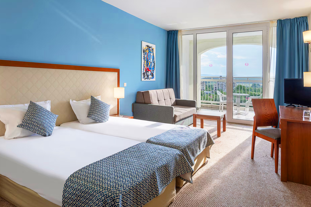 Le Sol Luna Bay 4* dispose de 543 chambres élégantes et spacieuses, décorées dans des couleurs douces qui invitent à la détente et au bien-être. Toutes disposent d’un balcon offrant une vue splendide sur les collines luxuriantes ou sur les eaux turquoise de la mer Noire.