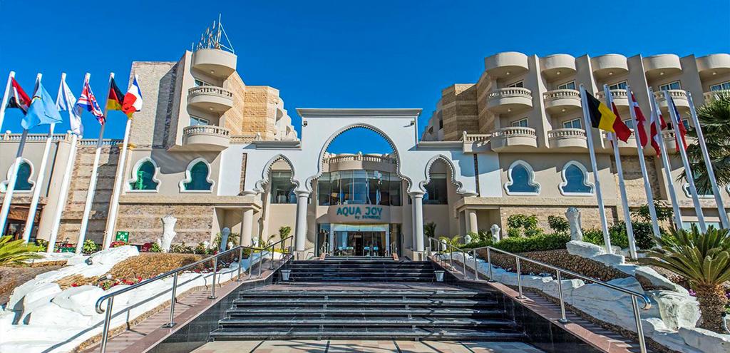Bienvenue au Sunrise Aqua Joy Resort 4* ! Situé en plein centre d'Hurghada, sur une magnifique plage aux eaux turquoise, ce complexe vous accueille dans une ambiance chaleureuse. En famille, profitez de moments conviviaux grâce au parc aquatique avec ses nombreux toboggans et piscine extérieures, qui amuseront les petits comme les grands. Vous dégusterez de nombreuses saveurs locales et internationales au sein des nombreux bars et restaurants, bénéficiant pour certain d'une jolie vue.